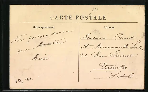 Personenbezogene Daten auf der Rückseite der Karte wurden durch blauen Textmarker unkenntlich gemacht. Die blauen Stellen sind auf die Vorderseite durchgeweicht und wirken sich negativ auf das Postkartenfoto aus
