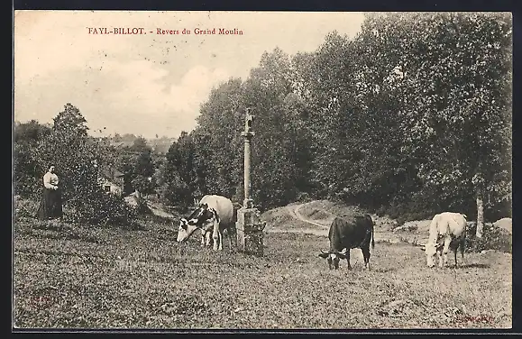 AK Fayl-Billot, Revers du Grand Moulin avec vaches au pâturage