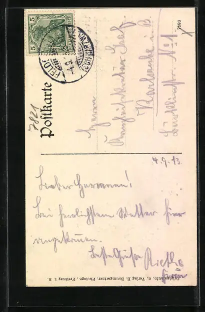 alte Ansichtskarte, gelaufen 1913, Stempelspur, guter Zustand