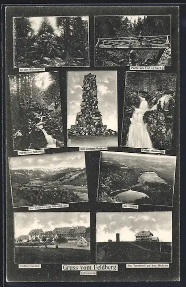 AK Feldberg / Schwarzwald, Das Bismark-Denkmal, Partie am Hebelweg, Feldberg Gasthaus