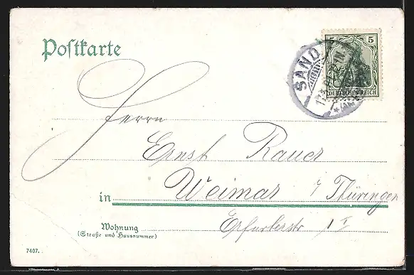 alte Ansichtskarte, gelaufen 1901, Abriebspur li. unten, Bugspur re. unten, minimaler Einriss li. mittig, guter Zustand