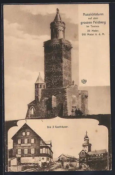 AK Feldberg / Taunus, Aussichtsturm, Drei Gasthäuser