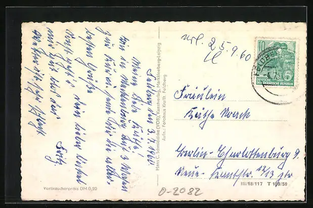 alte Ansichtskarte, gelaufen 1960, Eckknick re. oben, guter Zustand