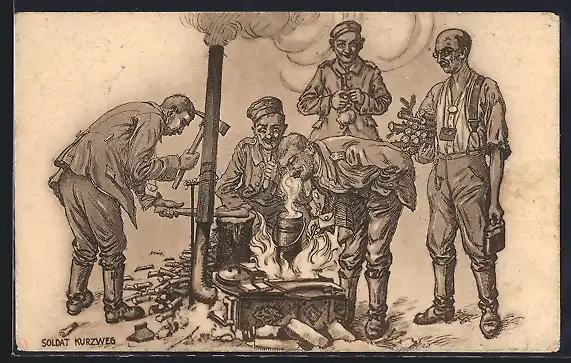 AK Feldgraue Geniesser beim Kochen im 1. Weltkrieg