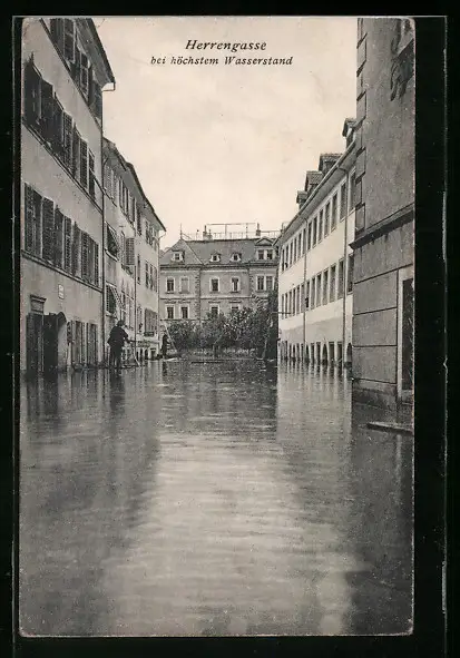AK Feldkirch, Hochwasserkatastrophe in der Herrengasse, 1910