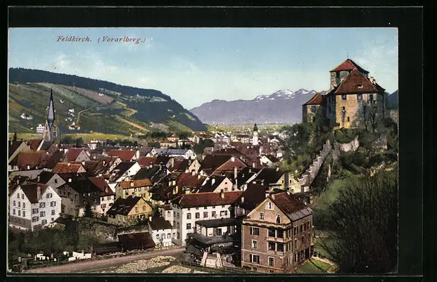 AK Feldkirch, Ortsansicht aus der Vogelschau