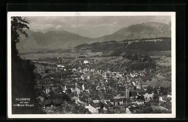 AK Feldkirch, Ortsansicht mit Bergen aus der Vogelschau