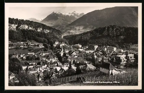 AK Feldkirch, Ortsansicht mit Gurtisspitze