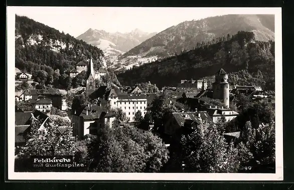 AK Feldkirch, Ortsansicht mit Gurtisspitze