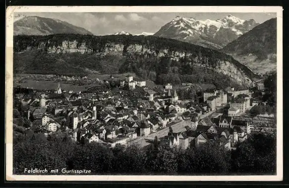AK Feldkirch, Ortsansicht mit Gurtisspitze