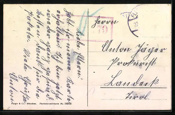 alte Ansichtskarte, gelaufen, Briefmarke entfernt, rückseitig Klebe- und Papierreste, rückseitig Oberflächenschaden, guter Zustand