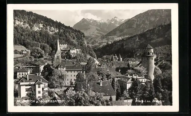 AK Feldkirch, Teilansicht mit Kirche gegen Gurtisspitze