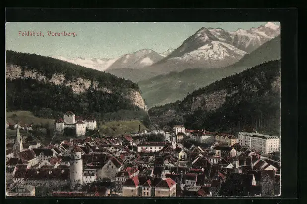 AK Feldkirch, Totalansicht mit Bergpanorama
