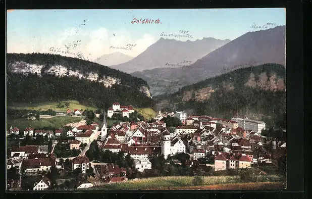 AK Feldkirch, Totalansicht mit Gurtisspitze