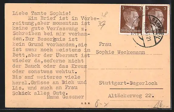alte Ansichtskarte, gelaufen 1943, guter Zustand
