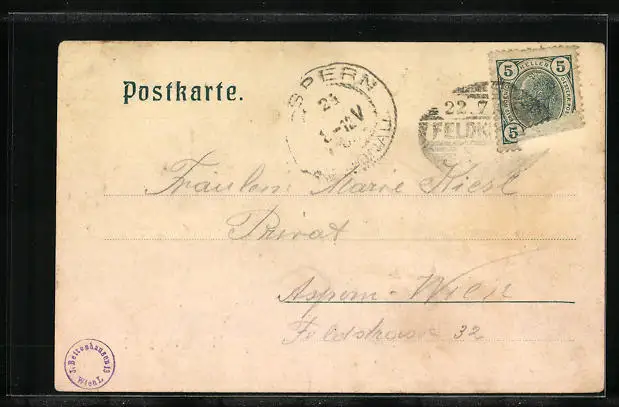 gelaufen 1905, Briefmarke tw. entfernt, Eckknick re. oben, guter Zustand