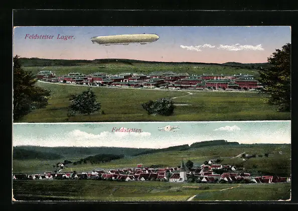 AK Feldstetten, Zeppelin Luftschiff über dem Feldstetter Lager