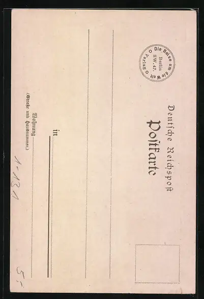 Personenbezogene Daten auf der Rückseite der Karte wurden durch blauen Textmarker unkenntlich gemacht. Die blauen Stellen sind auf die Vorderseite durchgeweicht und wirken sich negativ auf das Postkartenfoto aus