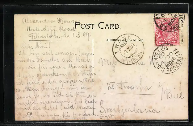 alte Ansichtskarte, gelaufen 1909, Eckknick re. unten, guter Zustand