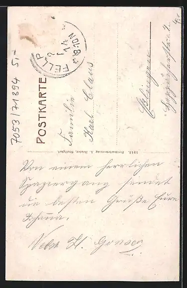 alte Ansichtskarte, gelaufen 1914, Briefmarke entfernt, guter Zustand