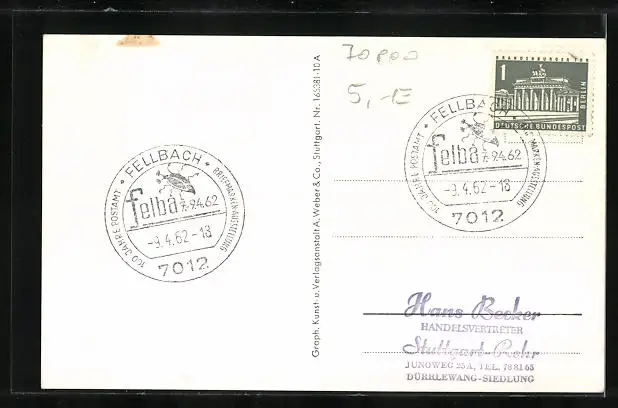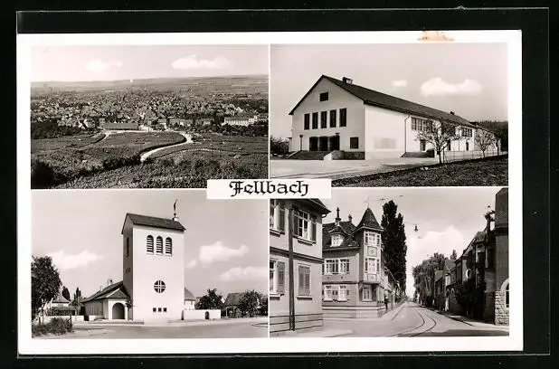 AK Fellbach, Gesamtansicht, Strassenpartie, Kirche