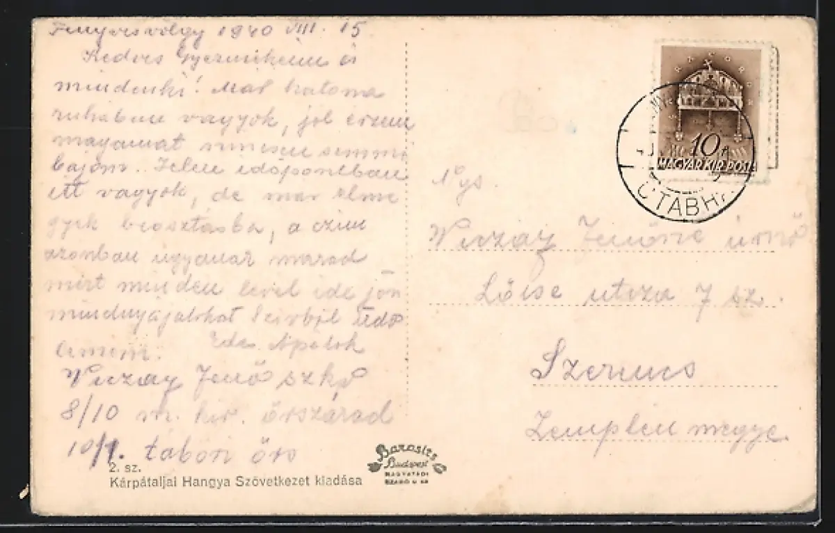 Personenbezogene Daten auf der Rückseite der Karte wurden durch blauen Textmarker unkenntlich gemacht. Die blauen Stellen sind auf die Vorderseite durchgeweicht und wirken sich negativ auf das Postkartenfoto aus
