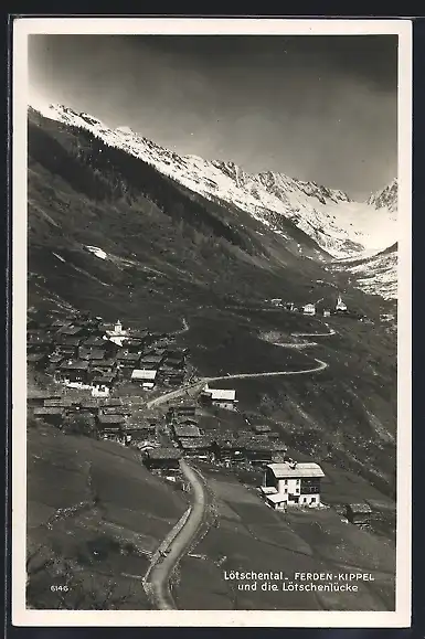 AK Ferden-Kippel / Lötschental, Ortsansicht mit der Lötschenlücke