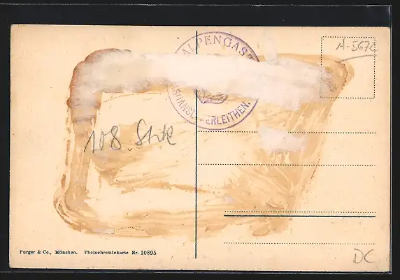 alte Ansichtskarte, gelaufen, rückseitig Klebe- und Papierreste, guter Zustand