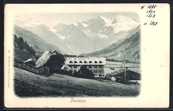AK Ferleiten, Hausansicht mit Gebirgspanorama