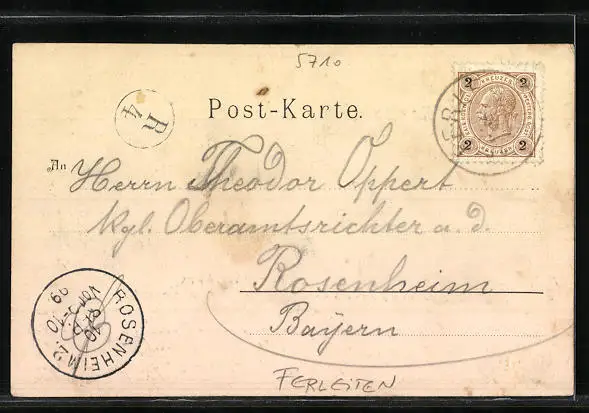 alte Ansichtskarte, gelaufen 1899, guter Zustand