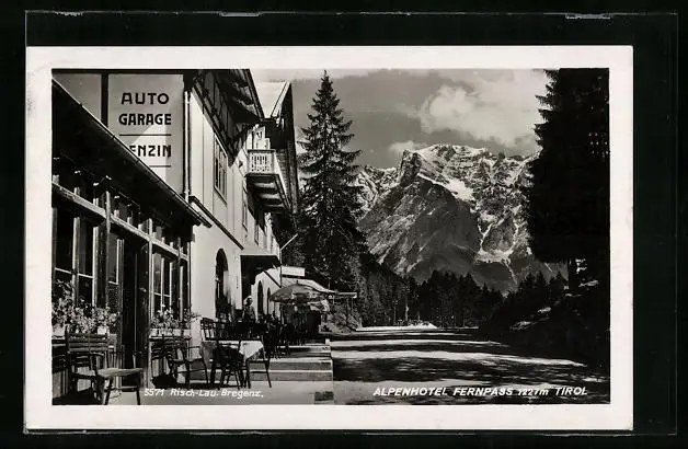 AK Fernpass, Alpenhotel Fernpass mit Terrasse
