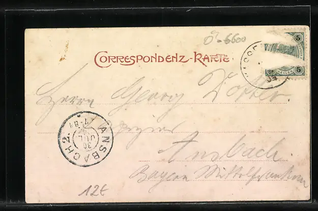 alte Ansichtskarte, gelaufen 1904, Briefmarke entfernt, rückseitig Oberflächenschaden, guter Zustand