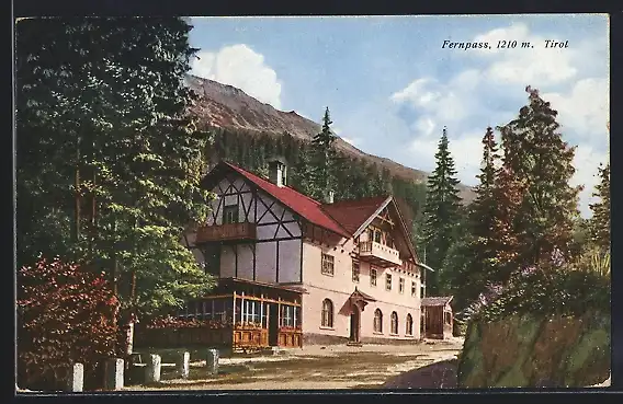 AK Fernpass /Tirol, Blick auf den Gasthof
