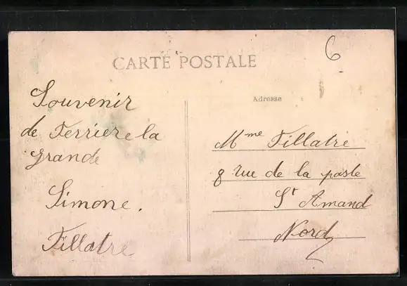 Personenbezogene Daten auf der Rückseite der Karte wurden durch blauen Textmarker unkenntlich gemacht. Die blauen Stellen sind auf die Vorderseite durchgeweicht und wirken sich negativ auf das Postkartenfoto aus