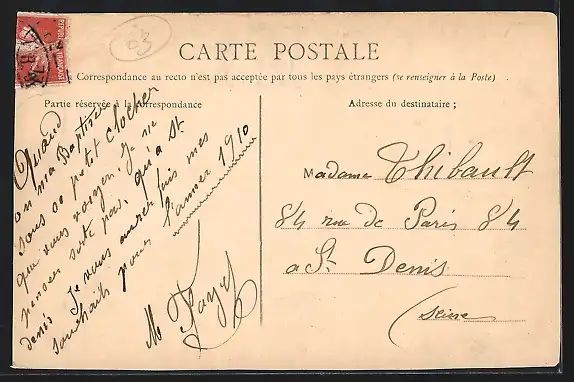 gelaufen 1910, Briefmarke entfernt, guter Zustand