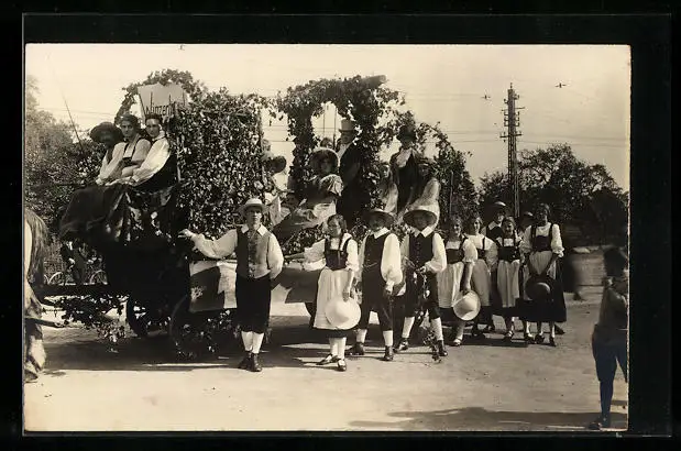 AK Festwagen Winzer in Trachten, Weinanbau