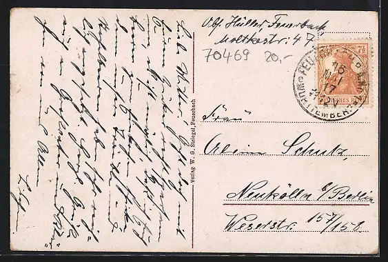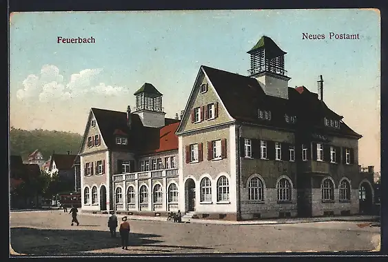 AK Feuerbach / Württ., Partie am Neuen Postamt