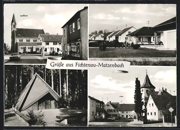 AK Fichtenau-Matzenbach, Strassenpartie mit Kirche, Neubauten