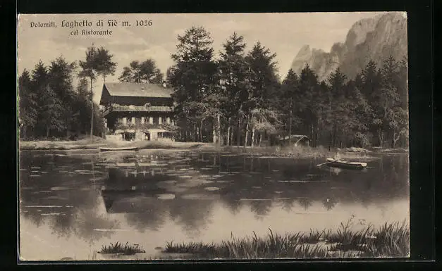 AK Fie, Dolomiti, Laghetto di Fie col Restaurante