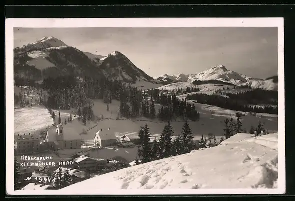 AK Fieberbrunn, Ortspartie mit Kitzbühler Horn