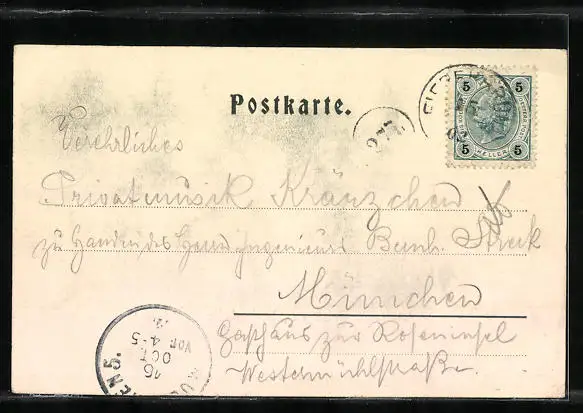 Personenbezogene Daten auf der Rückseite der Karte wurden durch blauen Textmarker unkenntlich gemacht. Die blauen Stellen sind auf die Vorderseite durchgeweicht und wirken sich negativ auf das Postkartenfoto aus