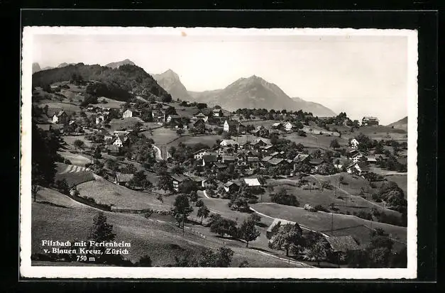 AK Filzbach, Ortsansicht mit Ferienheim v. Blauen Kreuz