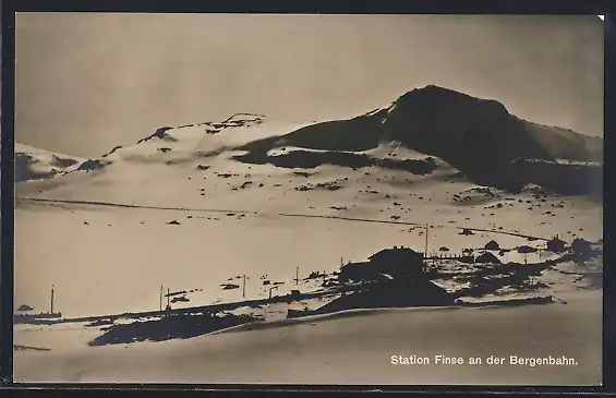 AK Finse, Station Finse an der Bergenbahn, Ansicht im Winter
