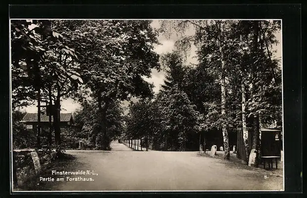 AK Finsterwalde, Strassenpartie am Forsthaus