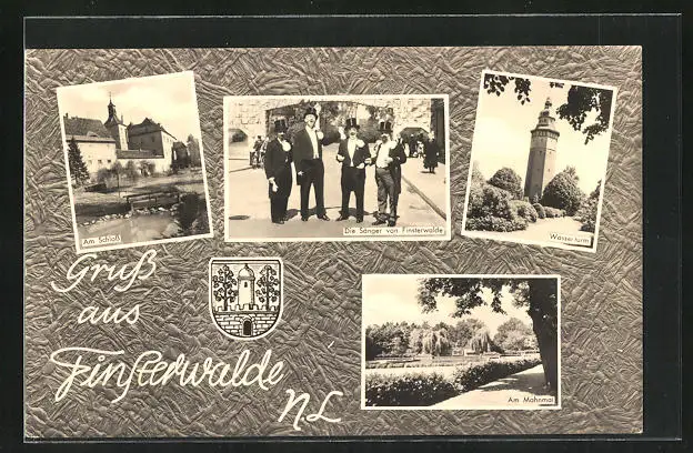 AK Finsterwalde, Wasserturm, Schloss, Sänger von Finsterwalde