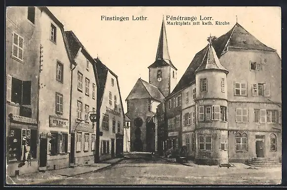 AK Finstingen i. L., Marktplatz mit kath. Kirche