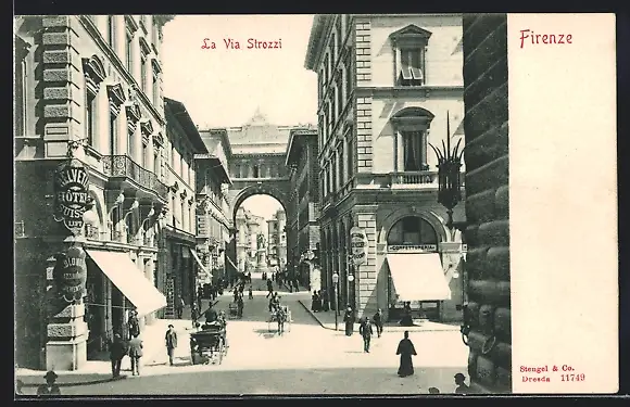 AK Firenze, La Via Strozzi, Pferdekutsche