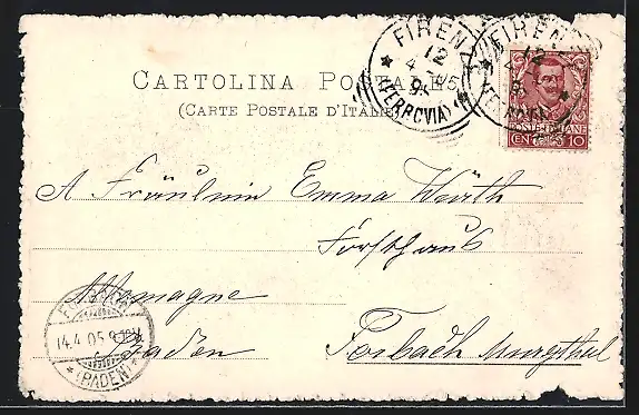 alte Ansichtskarte, gelaufen 1905, Eckknicke re., Stempelspur, Einrisse li. oben u. unten, guter Zustand