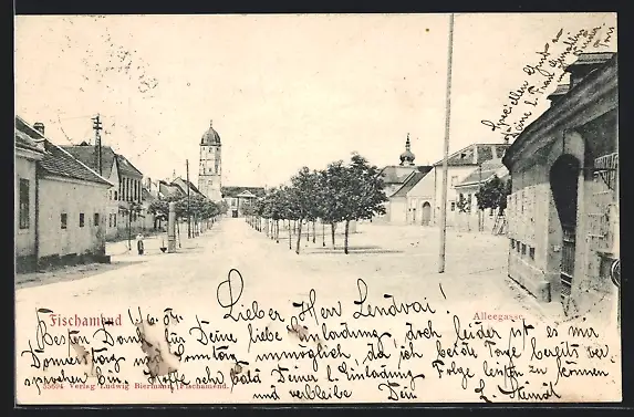 AK Fischamend, Alleegasse mit Blick zum Turm
