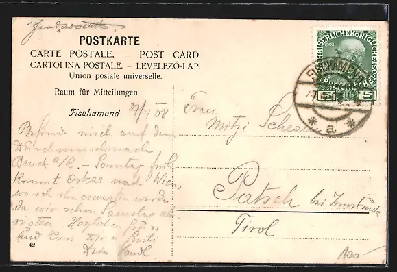 alte Ansichtskarte, gelaufen 1908, guter Zustand
